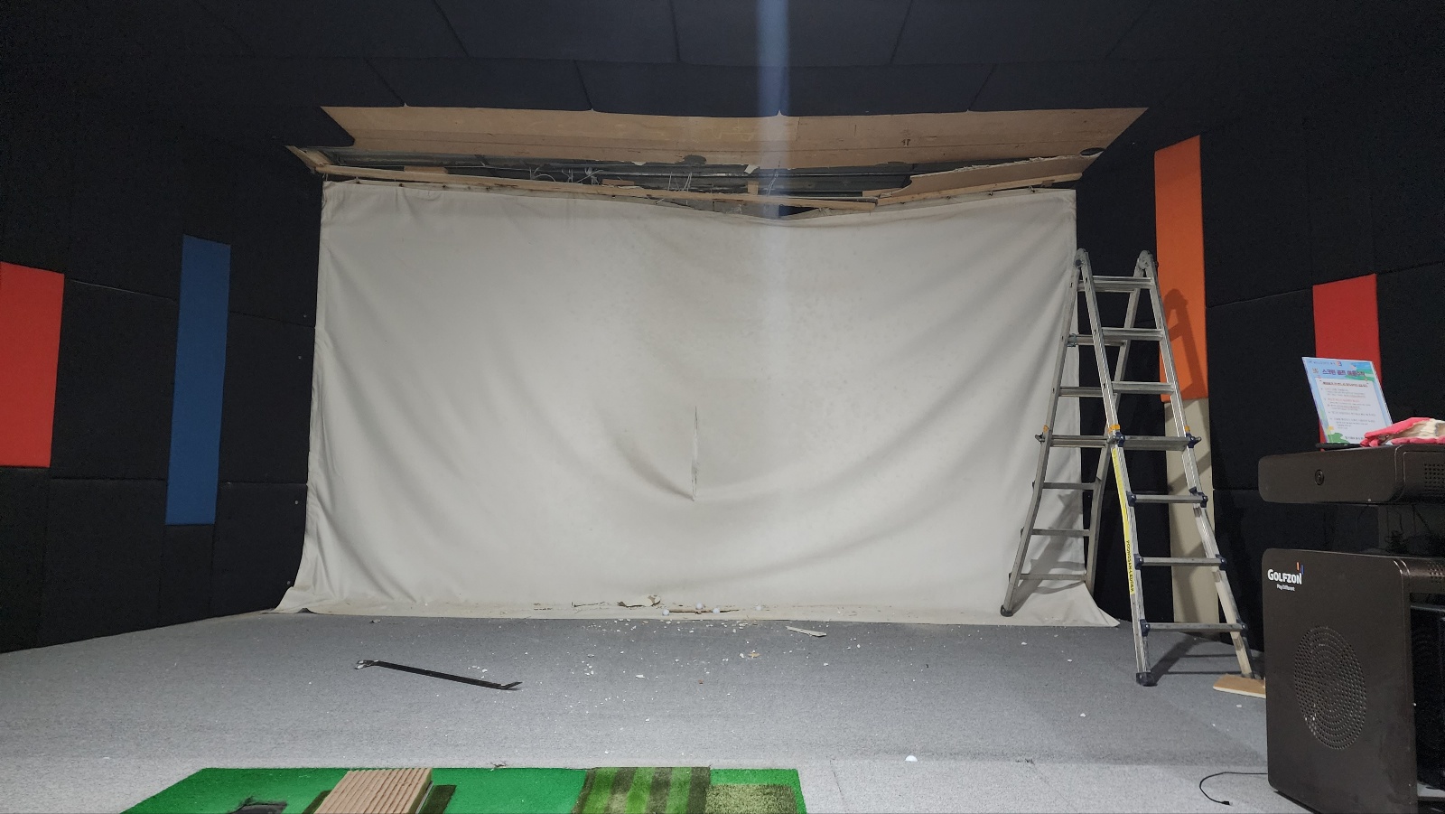 타석스크린, 오토티업기, 커튼망 및 반커튼망 교체, 골프존 스크린룸 천장 부스 수정시공을 완료했습니다.